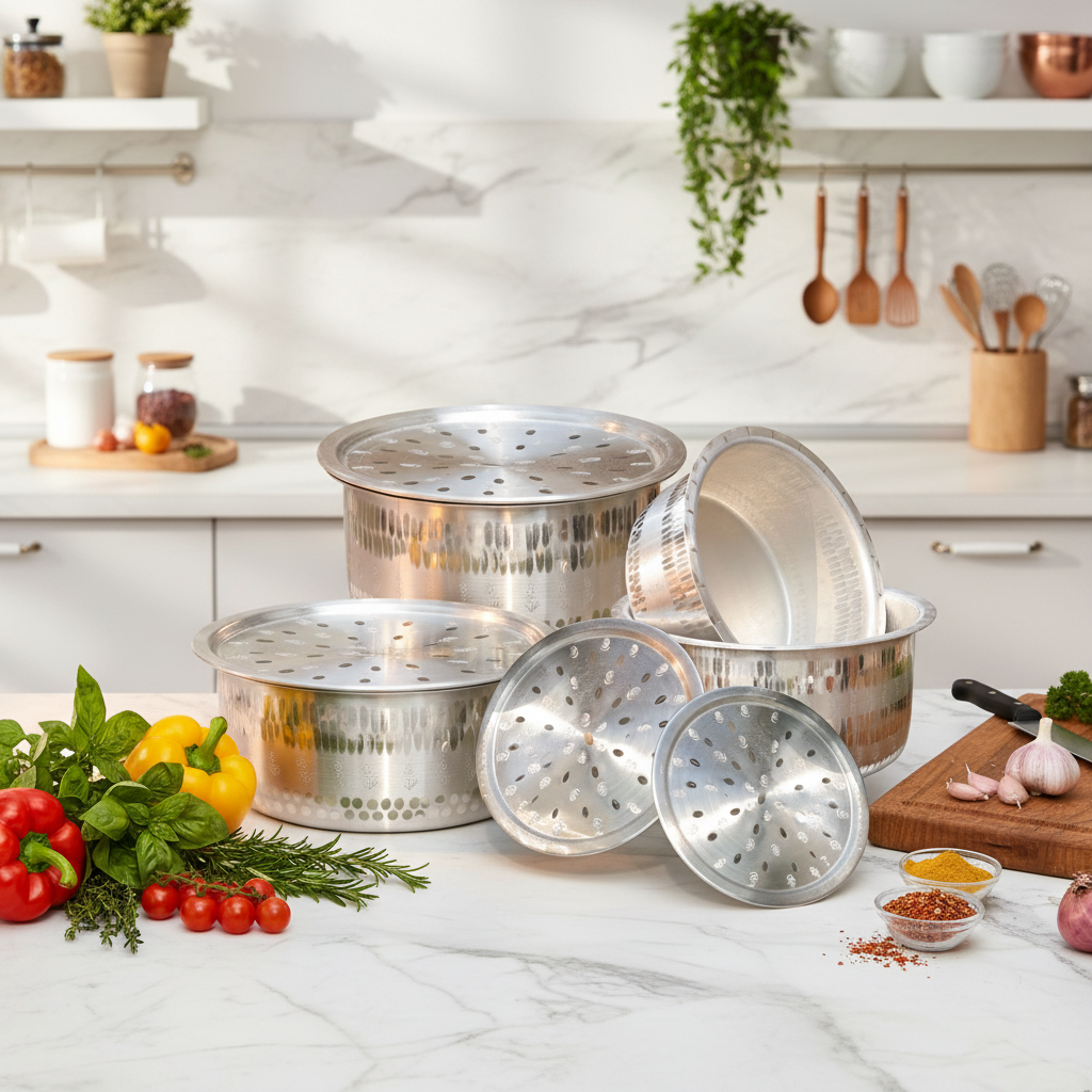 4 Pcs Mathar Naqshi Aluminum Cooking Pot Set - Casserole Set 25-28 Heavy Weight Master the art of everyday cooking... Read more