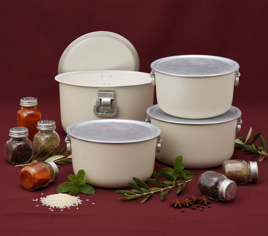 Aluminum Dull Finish 4 Pcs Cooking Pot Set - 33/36 With Handle Lightweight aluminum cookware engineered for everyday cooking efficiency.... Read more