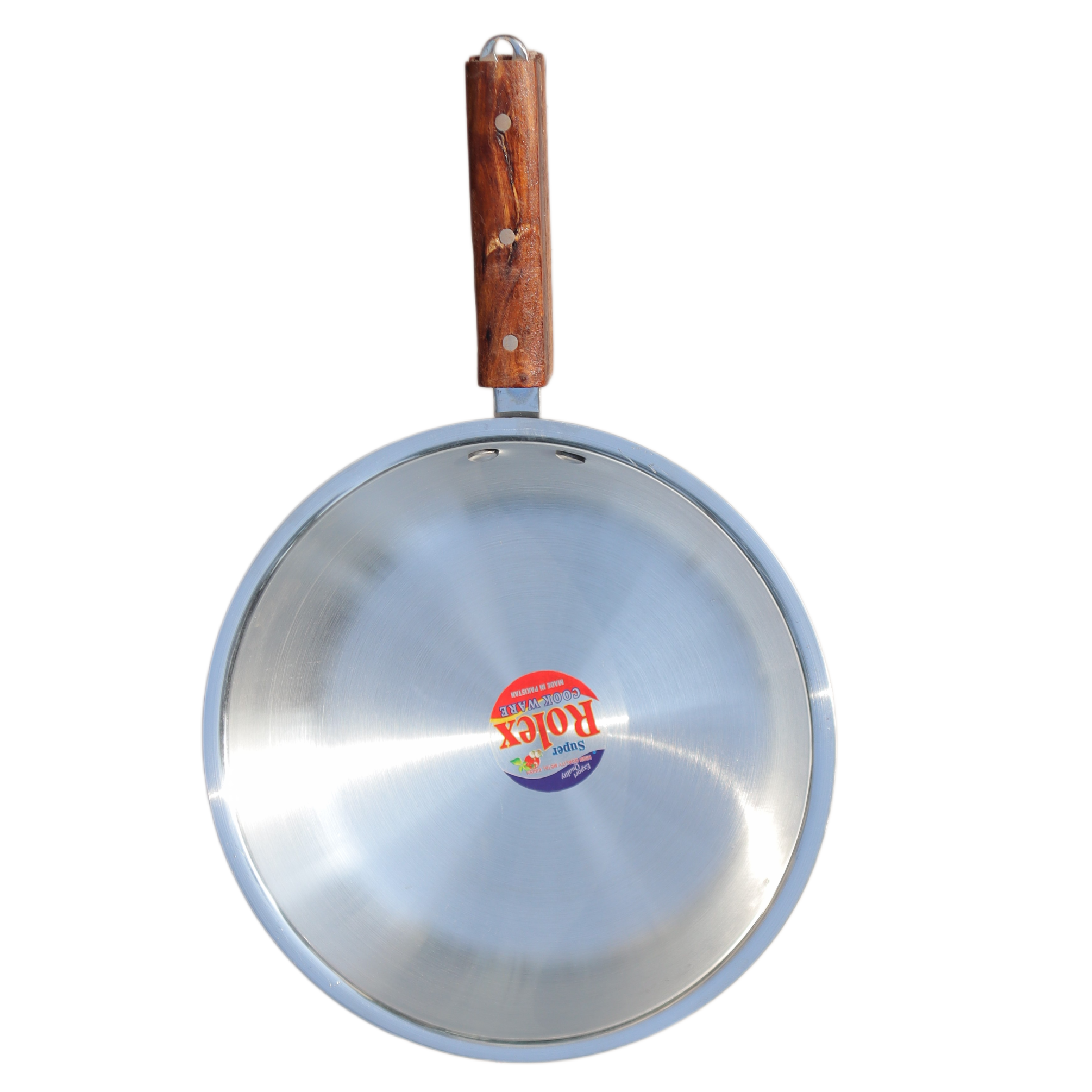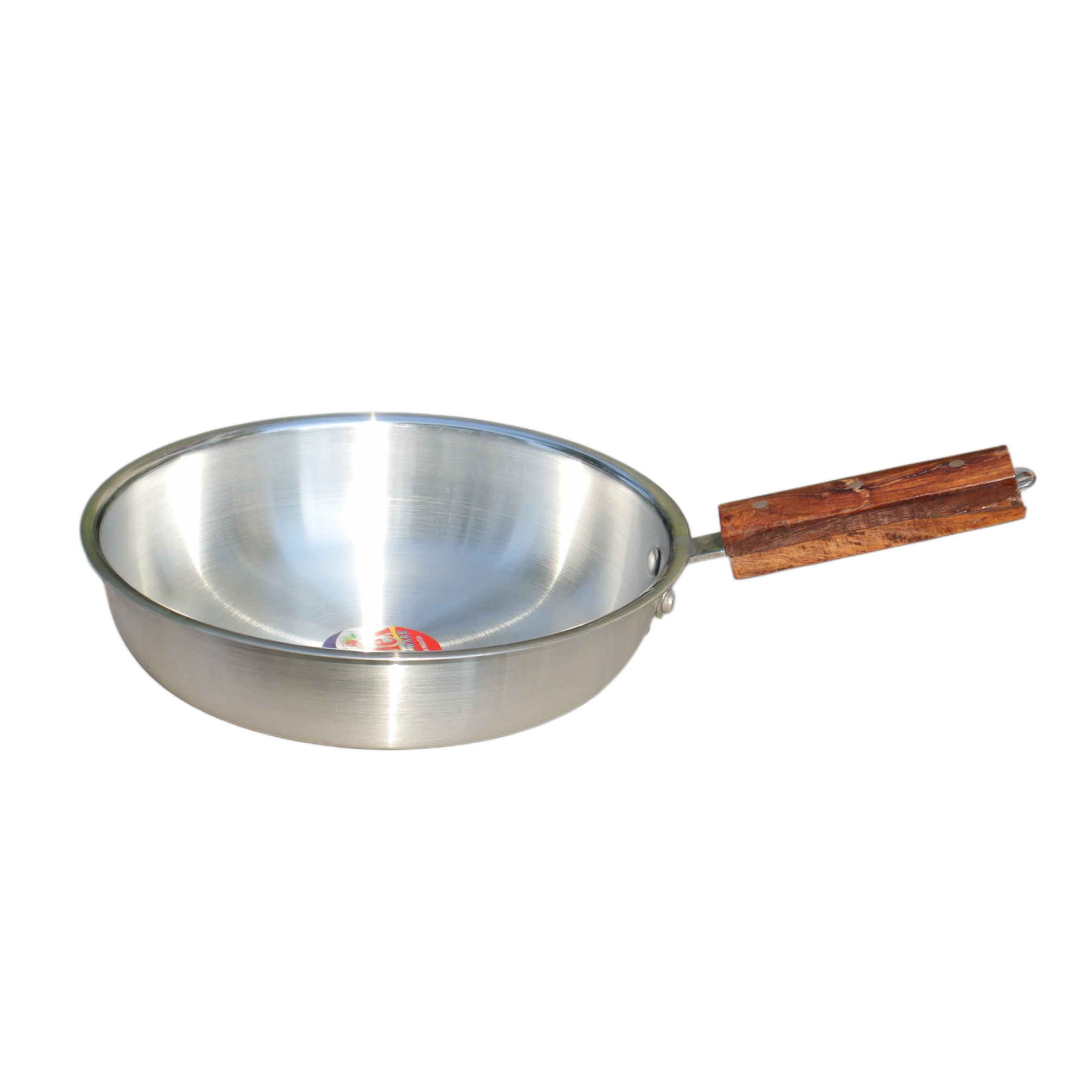 Aluminum Frying Pan With Wooden Strong Grip Handle - 24 cm Heavy Weight