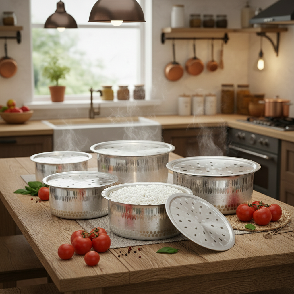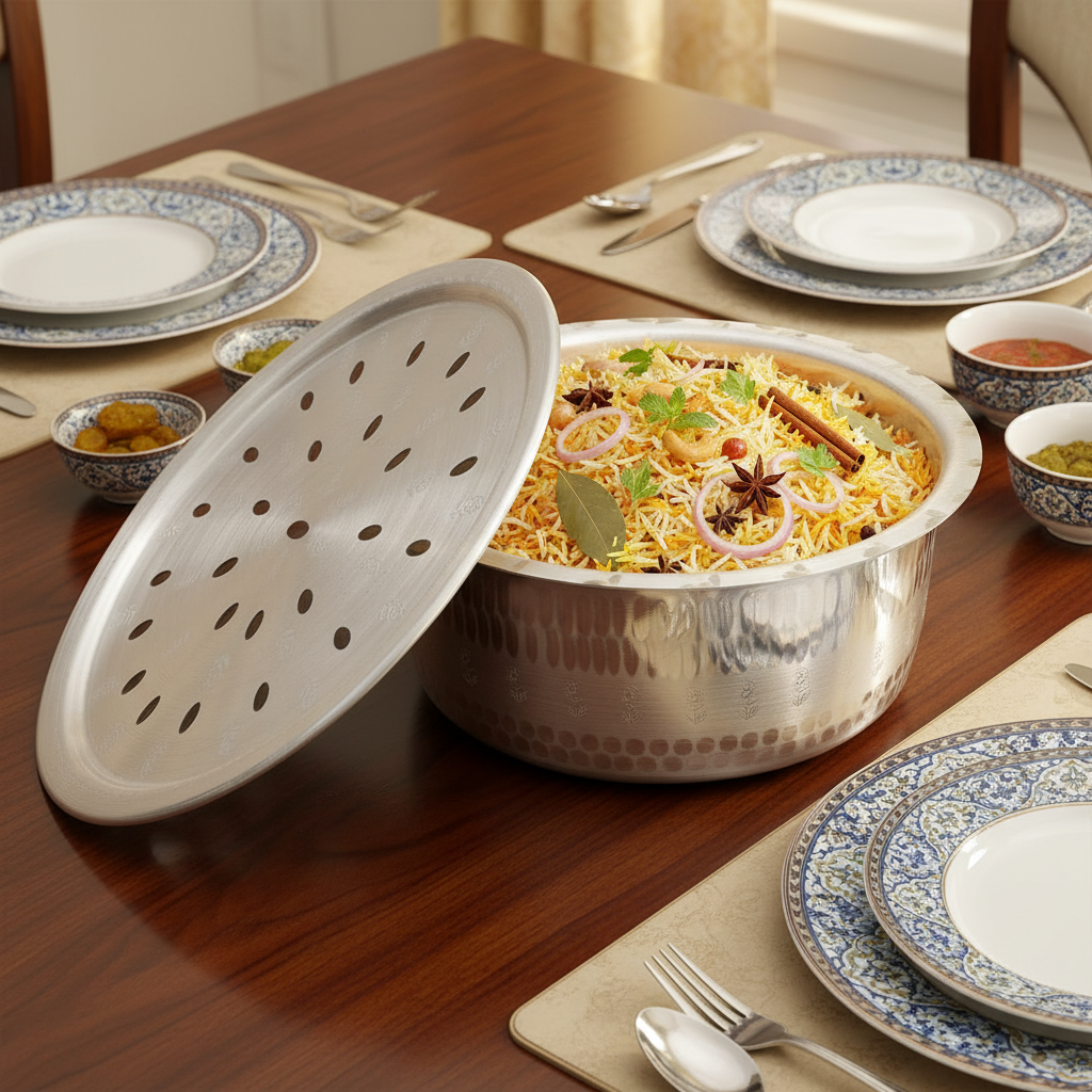 Mathar Naqshi Aluminum Cooking Pot Set - Casserole Set 14-18 Lightweight Mathar Naqshi Aluminum Cooking Pot Set combines traditional craftsmanship... Read more