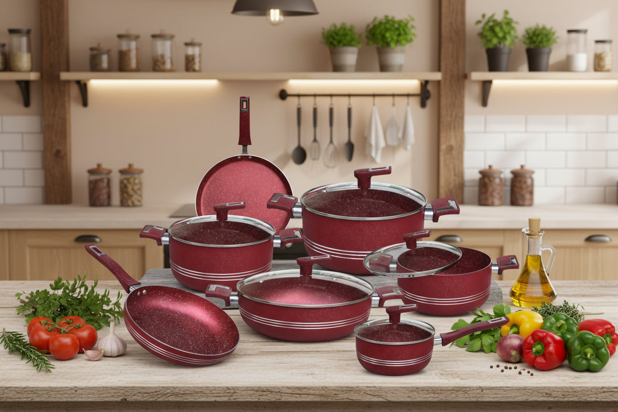 Nonstick Gift Set 15 Pcs - Complete Kitchen Set - Red Wine