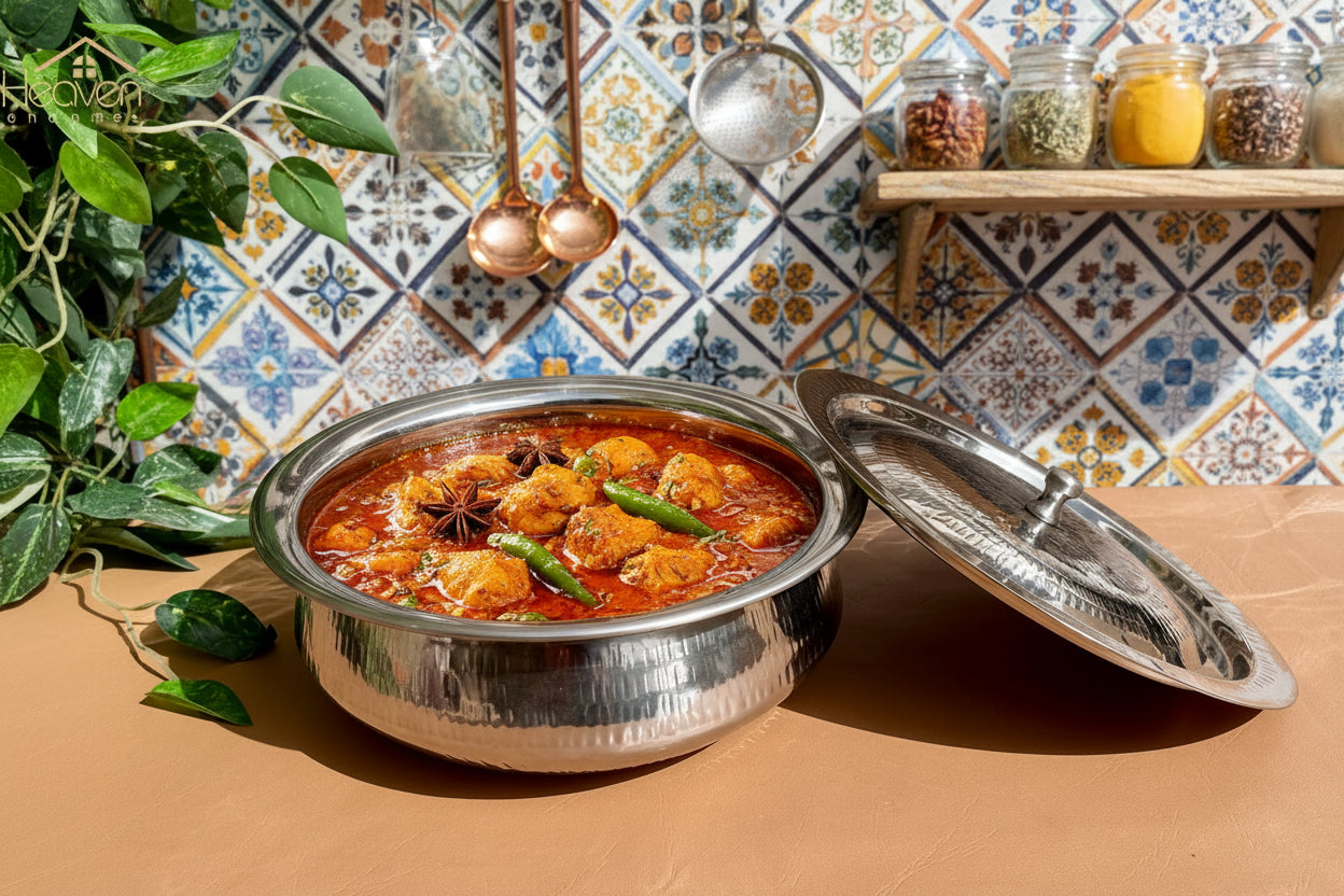 Elevate your table presentation with this premium stainless steel serving handi, engineered for both functionality and elegance. The durable construction resists corrosion and maintains its lustrous finish through years of use, while the secure-fitting lid preserves heat and keeps your dishes fresh. Perfect for serving traditional curries, biryanis, or contemporary cuisine, this versatile piece transitions seamlessly from kitchen to dining table. The ergonomic design ensures comfortable handling, and the polished surface facilitates effortless cleaning. An essential addition to any kitchen that values quality craftsmanship and refined dining experiences.